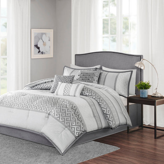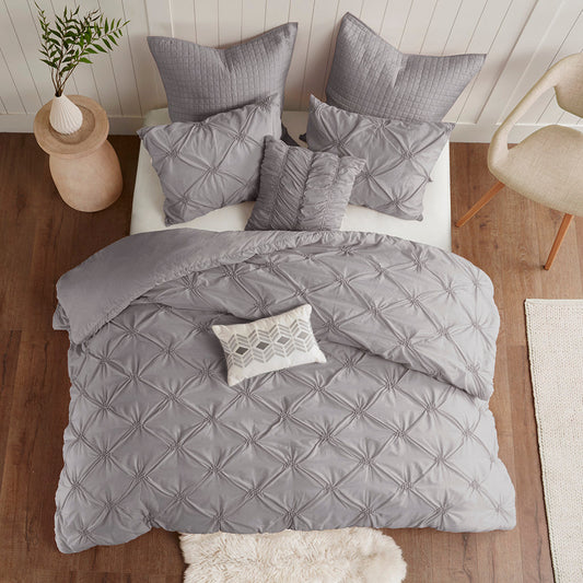 Talia 7 Piece Elastic Embroidered Chambray Duvet Set