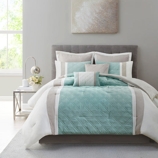 Talia 7 Piece Elastic Embroidered Chambray Duvet Set